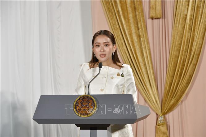 នាយករដ្ឋមន្ត្រីថៃ លោកស្រី Paetongtarn Shinawatra ថ្លែងនៅក្នុងទីក្រុងបាងកក។ រូបថត៖ THX/TTXVN |