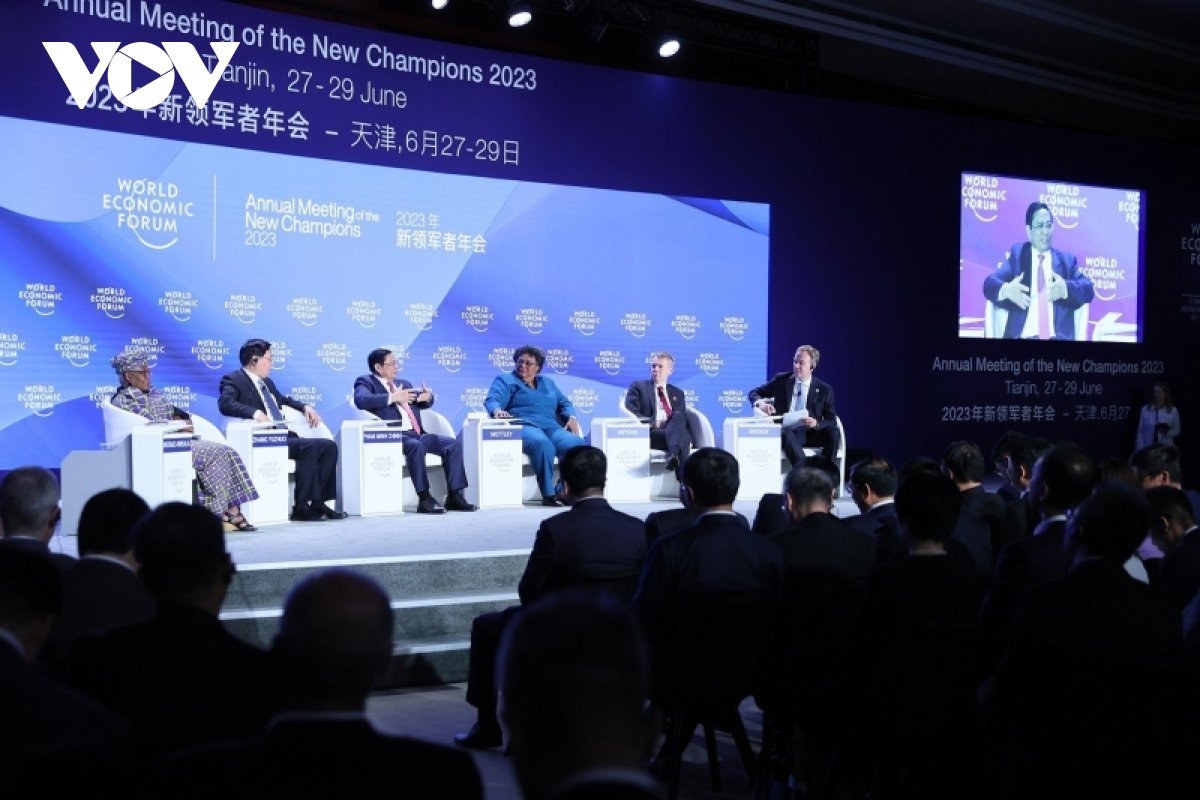 នាព្រឹកថ្ងៃទី ២៧ មិថុនា នាយករដ្ឋមន្ត្រី លោក Pham Minh Chinh បានចូលរួមសម័យបើកកិច្ចប្រជុំវេទិកាសេដ្ឋកិច្ចពិភពលោក Tianjin ឆ្នាំ ២០២៣ និងថ្លែង មតិក្នុងសម័យប្រជុំពិភាក្សាដោយប្រធានបទ "ប្រឈមមុខនឹងខ្យល់បកបញ្ច្រាស៖ ចាប់ផ្តើមកំណើនឡើងវិញ ចំពេលមានភាពផុយស្រួយ"។ នេះគឺជាវគ្គពិភាក្សាលើកដំបូងនៃកិច្ចប្រជុំ WEF Tianjin ដោយមានការចូលរួមពីគណៈប្រតិភូជាង ៣០០ ដែលជាអ្នកដឹកនាំប្រទេស អង្គការអន្តរជាតិ តំណាងសាជីវកម្ម និងសហគ្រាសធំៗ លើពិភពលោក។