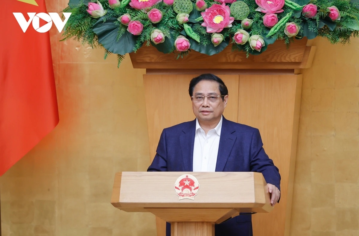 នាយករដ្ឋមន្ត្រី លោក ហ្វាម មិញជិញ ប្រធានគណៈកម្មាធិការដឹកនាំរដ្ឋាភិបាលទទួលបន្ទុកការងារ បូកសរុបការអនុវត្តសេចក្តីសម្រេចចិត្តនៃសន្និបាតមជ្ឈិមលើកទី៦ នីតិកាល ទី ១២។ រូបថត៖ VOV |