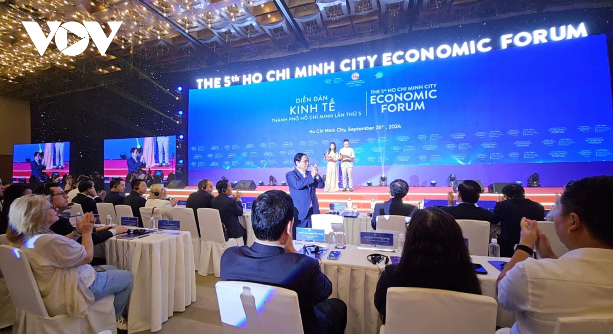 នាយករដ្ឋមន្ត្រី លោក ហ្វាម មិញ ជិញ អញ្ជើញចូលរួមវេទិកាសេដ្ឋកិច្ចទីក្រុងហូជីមិញ ឆ្នាំ ២០២៤ (រូបថត៖ VOV) |