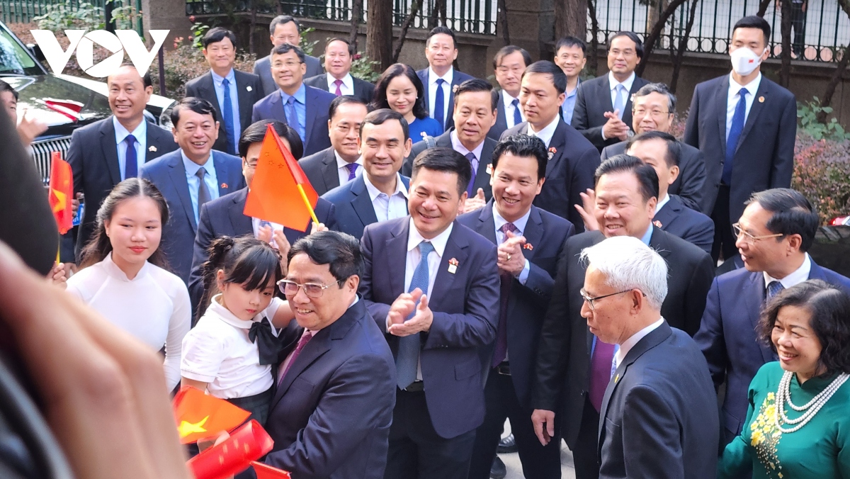 នារសៀលថ្ងៃទី ២៥ ខែមិថុនា បន្ទាប់ពីបានមកដល់ទីក្រុងប៉េកាំង ចាប់ផ្តើមដំណើរទស្សនកិច្ចជាផ្លូវការនៅប្រទេសចិន និងចូលរួមសន្និសីទប្រចាំឆ្នាំអ្នកត្រួសត្រាយ លើកទី ១៤ នៃវេទិកាសេដ្ឋកិច្ចពិភពលោក (WEF) នាយករដ្ឋមន្ត្រី លោក Pham Minh Chinh បានអញ្ជើញជួបសំណេះសំណាលជាមួយកម្មាភិបាលនៃទីភ្នាក់ងារតំណាង និងសហគមន៍ជនវៀតណាមនៅប្រទេសចិន។
