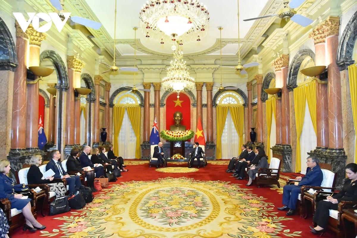 ប្រធានរដ្ឋវៀតណាមលោក Luong Cuong ទទួលជួបនាយករដ្ឋមន្ត្រីនូវែលហ្សេឡង់លោក Christopher Luxon។ (រូបថត៖ VOV) |