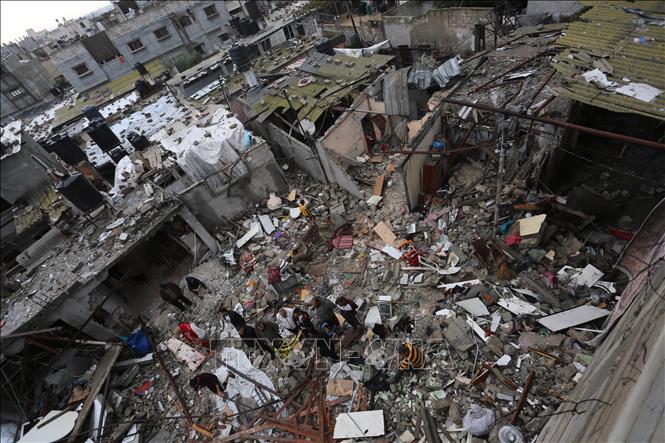 អគារត្រូវបានបំផ្លាញបន្ទាប់ពីការទម្លាក់គ្រាប់បែករបស់អ៊ីស្រាអែលទៅលើទីក្រុង Rafah ភាគខាងត្បូង Gaza Strip នៅថ្ងៃទី 15 ខែវិច្ឆិកាឆ្នាំ 2023 ។ រូបថត៖ THX/TTXVN |