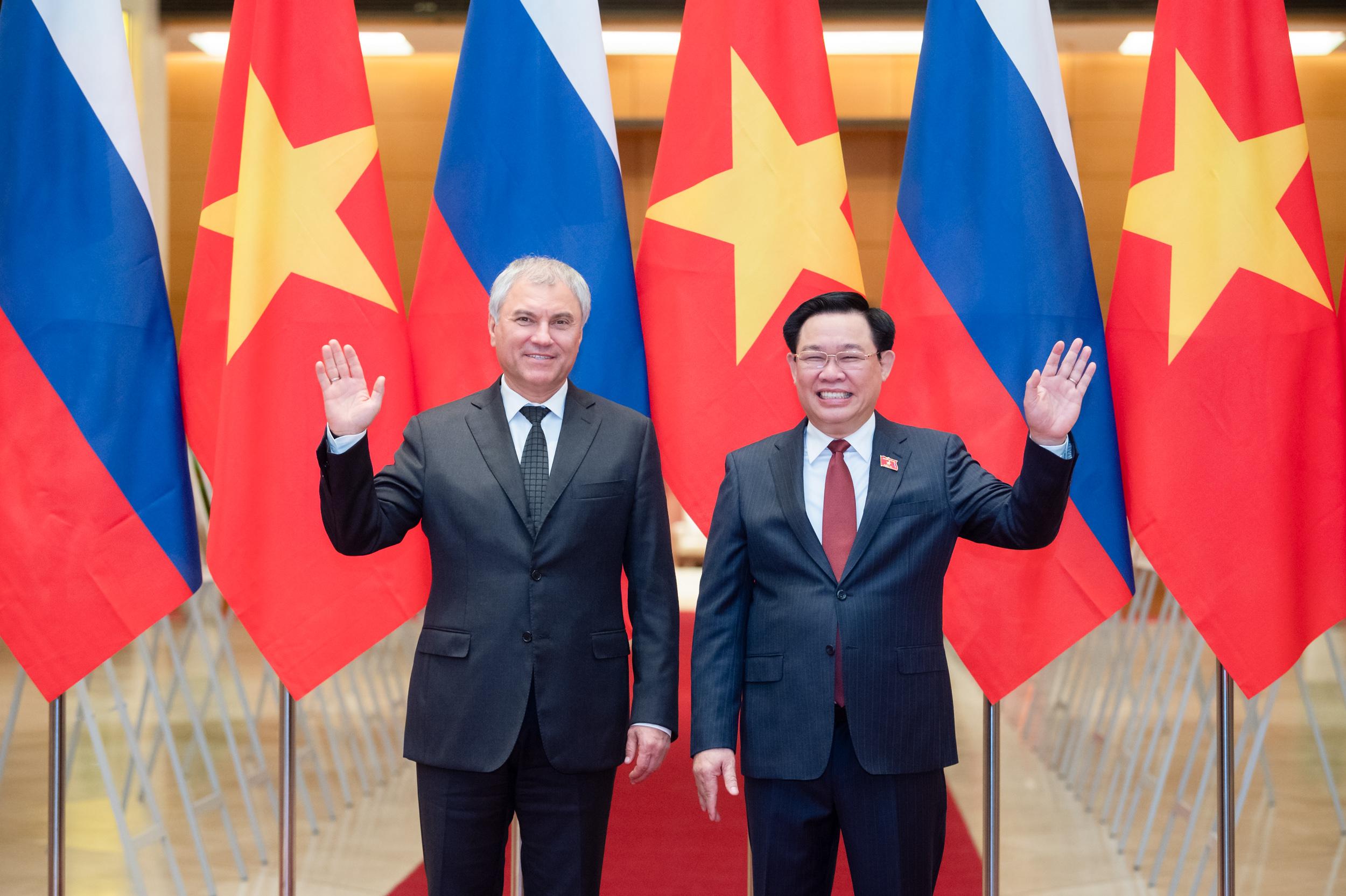 ប្រធានរដ្ឋសភាវៀតណាម លោក Vuong Dinh Hue និងប្រធានសភាឌូម៉ារុស្ស៊ី លោក Vyacheslav Victorovich Volodin។ (រូបថត៖ quochoi.vn) |