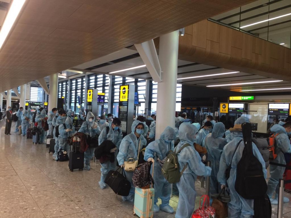 ក្នុងរយៈពេល ២ ថ្ងៃ ចាប់ពីថ្ងៃទី ២១ ដល់ថ្ងៃទី ២២ ខែធ្នូ ឆ្នាំ ២០២០ ស្ថា ប័នមានសមត្ថកិច្ចវៀតណាម ស្ថាន ទូតវៀត ណាមប្រចាំនៅចក្រក្រភព អង់គ្លេស និងក្រុមហ៊ុនអាកាសចរ ណ៍ជាតិវៀតណាម បានសហការជាមួយស្ថាប័នមានសមត្ថកិច្ចអង់គ្លេសរៀបចំជើងហោះហើរ បញ្ជូនពលរដ្ឋ វៀតណាមជាង ៣០០ នាក់ឲ្យវិលត្រ ឡប់មកប្រទេសវិញប្រកបដោយសុវត្ថិភាព។ អ្នកដំណើរទាំងនេះរួមមាន កុមារ មនុស្សវ័យចំណាស់ អ្នកជំងឺ និស្សិត និងករណីលំបាកពិសេសមួយចំមួនទៀត៕