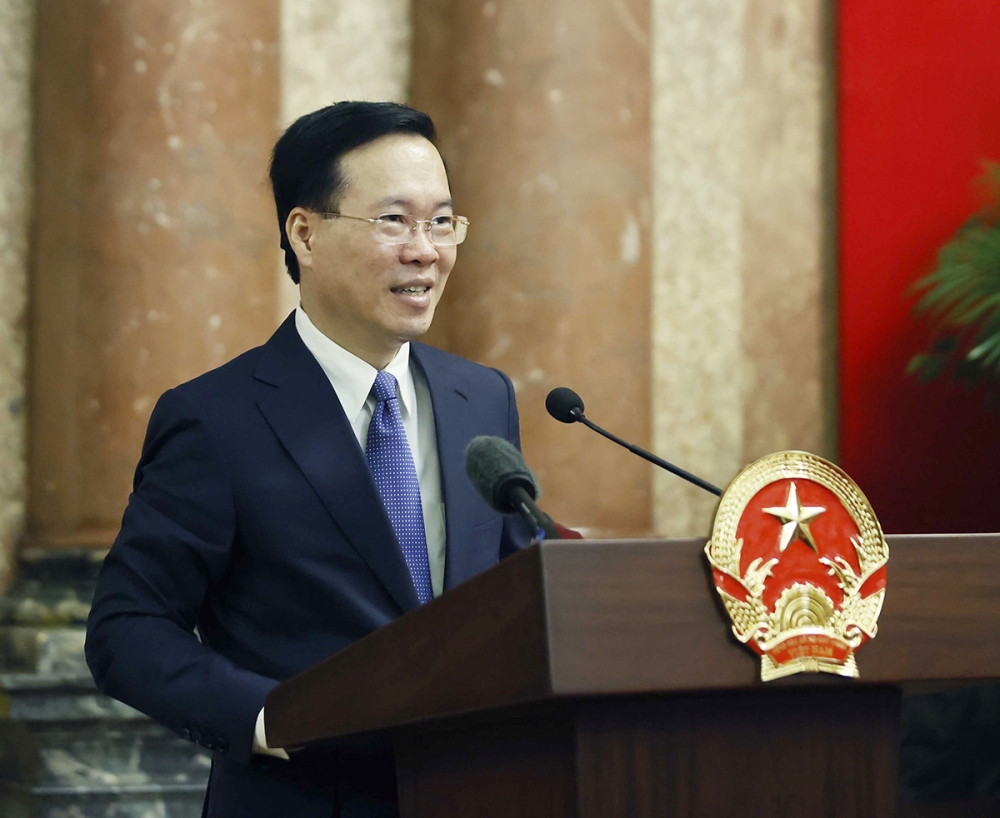 ប្រធានរដ្ឋ លោក Vo Van Thuong អញ្ជើញថ្លែងនៅក្នុងជំនួបនេះ។ រូបថត៖ VOV |
