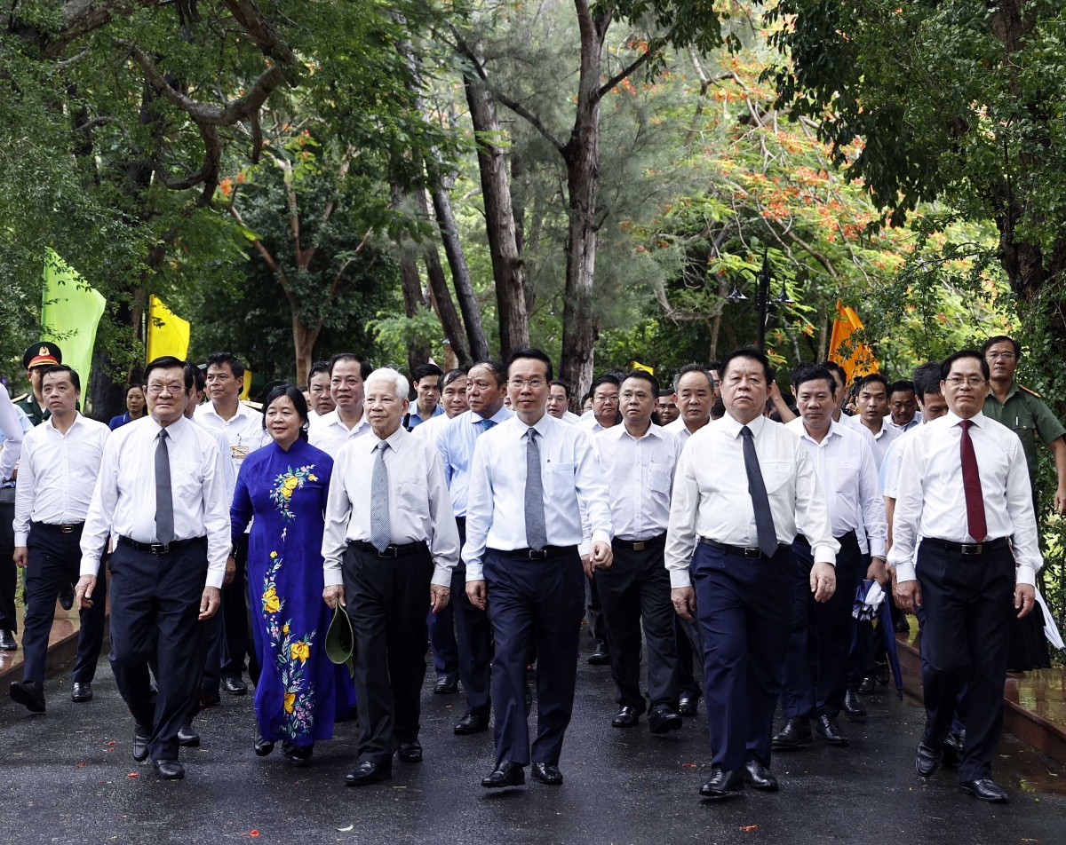 បន្ទាប់ពីពិធីអុជធូប លោកប្រធានរដ្ឋ Vo Van Thuong បានចូលរួមពិធីរំលឹកវិញ្ញាណក្ខន្ធយុទ្ធជនពលី យុទ្ធជនបដិវត្តន៍ និងជនរួមជាតិស្នេហាជាតិដែលបានទទួលមរណៈភាពនៅ Con Dao។ ពិធីនេះត្រូវបានធ្វើឡើងនៅទីក្ការៈបូជា Con Dao។