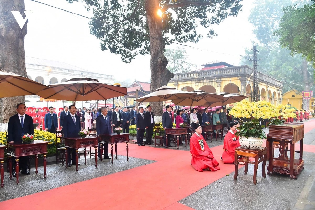 លោកប្រធានរដ្ឋ លឿង គឿង បានធ្វើពិធីអុជធូបនិងឧទ្ទិសកុសលជូនដល់បុព្វការីជន អ្នកមានទេពកោសល្យ និងបុព្វបុរសដែលបានលះបង់ដើម្បីការពារប្រទេសជាតិ; រាយការណ៍ជូនបុព្វបុរសនូវសមិទ្ធិផលលេចធ្លោ និងទូលំទូលាយរបស់ប្រទេសក្នុងឆ្នាំកន្លងទៅ។ លោកប្រធានរដ្ឋនិងគណៈប្រតិភូបានប្តេជ្ញាពង្រឹងផែនមហាសាមគ្គីភាព កសាងប្រទេសជាតិឲ្យកាន់តែរីកចម្រើន ប្រជាធិបតេយ្យ សមធម៌ និងអរិយធម៌; ឆ្ពោះទៅរកយុគសម័យថ្មី យុគសម័យនៃការអភិវឌ្ឍន៍ដ៏រឹងមាំ និងវិបុលភាព; ប្រជាជនមានជីវភាពធូរធារ និងសប្បាយរីករាយ។