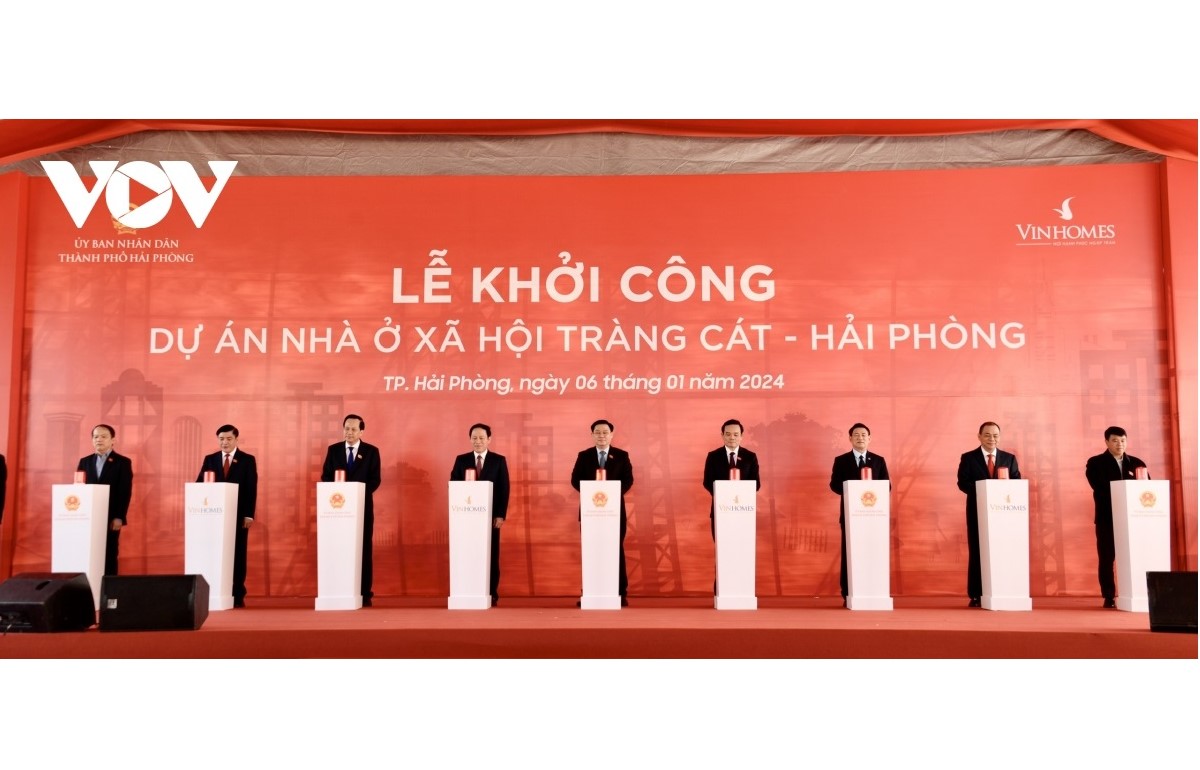 ប្រធានរដ្ឋសភាវៀតណាម លោក Vuong Dinh Hue បានអញ្ជើញចូលរួមពិធីបើកការដ្ឋានសាងសង់គម្រោងលំនៅដ្ឋានសង្គមលើកដំបូង នៅសង្កាត់ Trang Cat ស្រុក Hai An (រូបថត៖ VOV) |