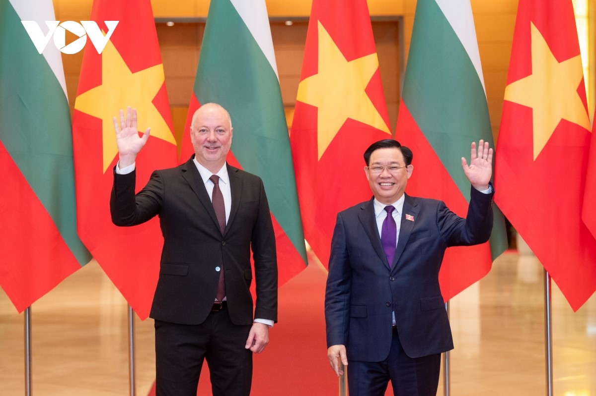 ប្រធានរដ្ឋសភាវៀតណាម លោក Vuong Dinh Hue និងប្រធានរដ្ឋសភាប៊ុលហ្គារី លោក Rossen Dimitrov។ (រូបថត៖ VOV) |