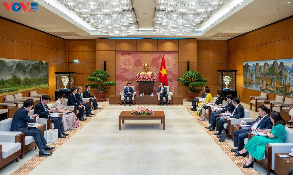 (VOVWORLD) - រដ្ឋសភាវៀតណាមនិងកូរ៉េខាងត្បូងមានលក្ខខណ្ឌគ្រប់គ្រាន់ដើម្បីបង្កើតទំនាក់ ទំនងគំរូ ក្លាយជាគំរូក្នុងទំនាក់ទំនងសភានៅលើពិភពលោក។ នេះជាការបញ្ជាក់របស់ ប្រធានរដ្ឋសភាវៀតណាម លោក Vuong Dinh Hue នៅពេលទទួលជួបជាមួយអតីត ប្រធានរដ្ឋសភាកូរ៉េខាងត្បូងលោក Park Byeong Seug កាលពីយប់ថ្ងៃទី២៤ ខែកក្កដា នៅវិមានរដ្ឋសភា រដ្ឋធានីហាណូយ។