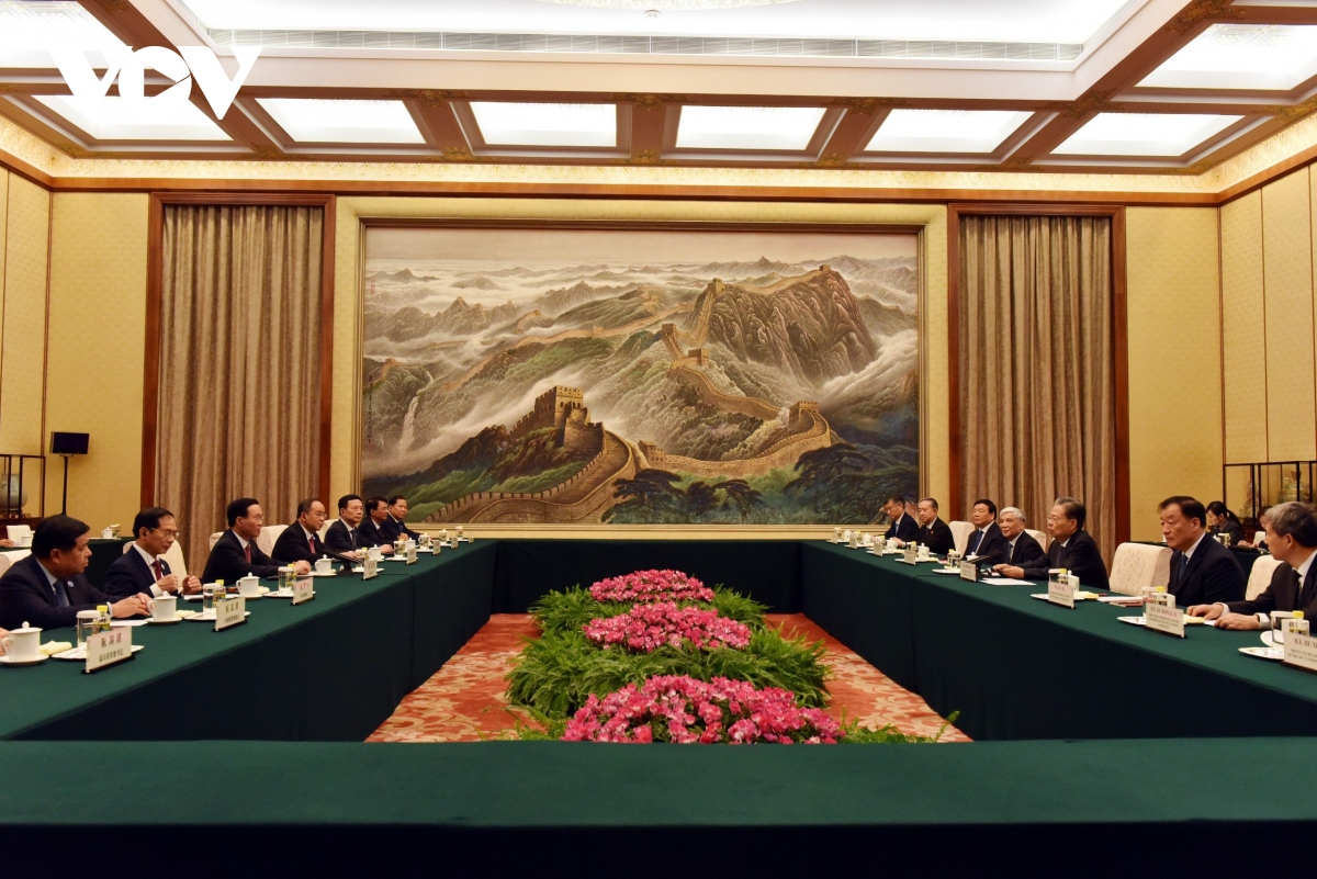 នៅទីនេះ ប្រធានរដ្ឋលោក Vo Van Thuong បានអះអាងថា បក្ស រដ្ឋ និងប្រជាជនវៀតណាមជានិច្ចកាលចាត់ទុកការកសាង និងអភិវឌ្ឍន៍ទំនាក់ទំនងល្អជាមួយបក្ស រដ្ឋាភិបាល និងប្រជាជនចិនជាជម្រើសយុទ្ធសាស្ត្រ និងជាអាទិភាពកំពូលក្នុងគោលនយោបាយការបរទេសរបស់វៀតណាម។ ប្រធានគណៈកម្មាធិការអចិន្ត្រៃយ៍នៃសភាតំណាងប្រជាជនទូទាំងប្រទេសចិន លោក Zhao Leji បានអះអាងថា ទំនាក់ទំនងមិត្តភាពជាមួយវៀតណាមជានិច្ចកាលត្រូវបានបក្ស រដ្ឋាភិបាល និងប្រជាជនចិនវាយតម្លៃខ្ពស់ ហើយតែងតែជាទិសដៅអាទិភាពក្នុងគោលនយោបាយការបរទេសជិតខាងរបស់ចិន។