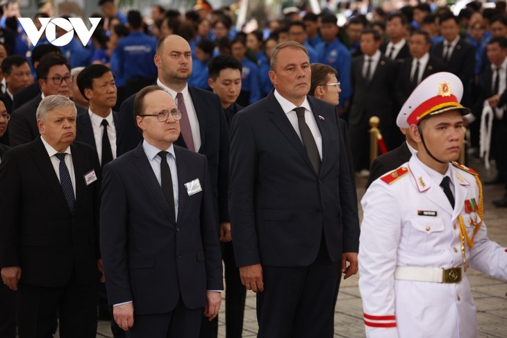 គណៈប្រតិភូជាច្រើនពីក្រសួង មន្ទីរ ផ្នែក អង្គភាព ប្រជាជនក្នុងស្រុក គណៈប្រតិភូការទូត និងមិត្តភក្តិអន្តរជាតិ បានទៅគោរពវិញ្ញាណក្ខន្ធលោកអគ្គលេខាបក្ស នៅផ្ទះបុណ្យសពជាតិលេខ ៥ Tran Thanh Tong (ហាណូយ) សាល Thong Nhat នៅទីក្រុងហូជីមិញ និងផ្ទះវប្បធម៌ភូមិ Lai Da ឃុំ Dong Hoi ស្រុក Dong Anh (ហាណូយ) ជាស្រុកកំណើតរបស់លោកអគ្គលេខាបក្ស។