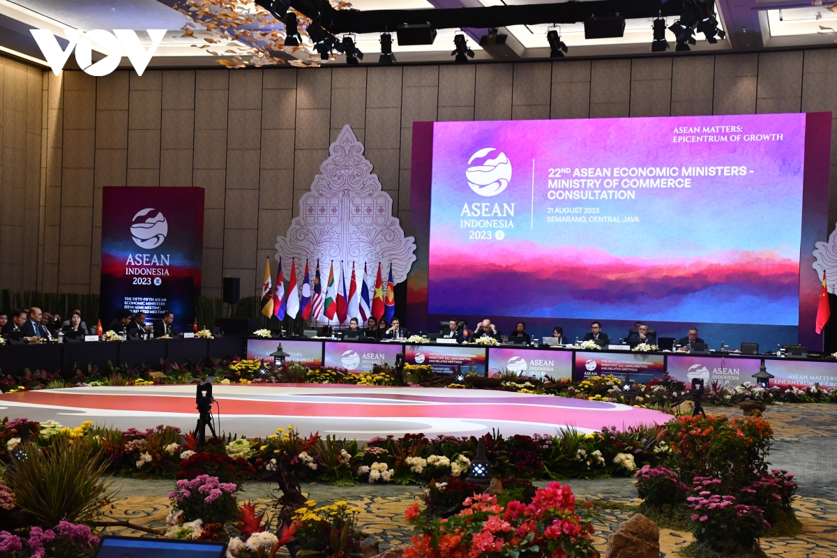 កិច្ចប្រជុំពិគ្រោះយោបល់រដ្ឋមន្ត្រីសេដ្ឋកិច្ចអាស៊ាន និងចិន (រូបថត៖ អ្នកសារព័ត៌មាន/VOV-ឥណ្ឌូនេស៊ី) |