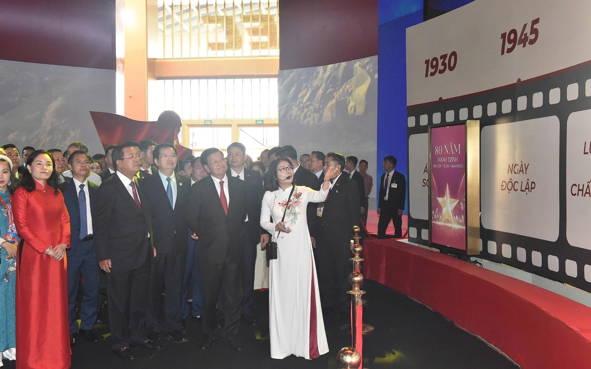 នៅទីនេះ ឧបនាយករដ្ឋមន្ត្រី លោក ម៉ាយ វាន់ជិញ បានឧទ្ទេសនាមដល់គណៈប្រតិភូការតាំងពិព័រណ៍សមិទ្ធិផលជាតិជាមួយសមិទ្ធិផលលេចធ្លោ ក្នុង រយៈពេល ៨ ទសវត្សរ៍នៃការកសាង និងអភិវឌ្ឍប្រទេសលើវិស័យជាច្រើន ដូចជា៖ ឧស្សាហកម្ម - បច្ចេកវិទ្យា កសិកម្ម - ជនបទ សន្តិសុខ - ការពារជាតិ កិច្ចការបរទេស សុខាភិបាល ការវិនិយោគ - ពាណិជ្ជកម្ម អប់រំ វប្បធម៌ កីឡា និងទេសចរណ៍។ លោកឧបនាយករដ្ឋមន្ត្រី និងថ្នាក់ដឹកនាំនៃប្រទេសឡាវនិងកម្ពុជា បានទៅទស្សនាតំបន់កណ្តាលនៃពិព័រណ៍ដោយប្រធានបទ "រយៈពេល៩៥ឆ្នាំនៃទង់បក្សបំភ្លឺផ្លូវ" បង្កើតឡើងវិញនូវទិដ្ឋភាពទូទៅនៃព្រឹត្តិការ ណ៍សំខាន់ៗ និងជោគជ័យក្រោមការដឹកនាំរបស់បក្ស រៀបចំដោយកាសែត ប្រជាជន (Nhan Dan); លំហរ ៨០ឆ្នាំ នៃដំណើរឯករាជ្យ-សេរីភាព-សុភមង្គល រៀបចំដោយក្រសួងវប្បធម៌ កីឡា និងទេសចរណ៍; កន្លែងតាំងពិព័រណ៍របស់ក្រសួងការបរទេស; តំបន់តាំងពិព័រណ៌សម្រាប់អនាគតបៃតងជាមួយនឹងឧស្សាហកម្មផ្លាស់ប្តូរបៃតងនៃសាជីវកម្ម Vingroup។