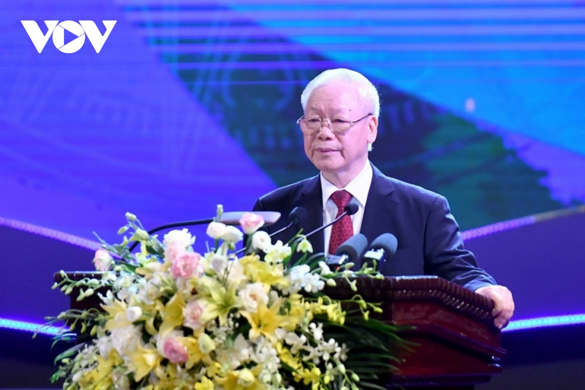 អគ្គលេខាបក្ស លោក Nguyen Phu Trong ថ្លែងសុន្ទរកថានៅពិធី។ (រូបថត៖ VOV) |