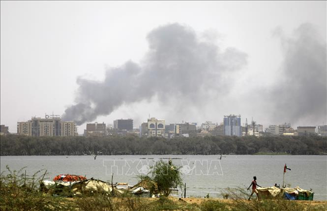 ផ្សែងហុយឡើងក្នុងពេលប្រយុទ្ធគ្នានៅក្រុង Khartoum ប្រទេសស៊ូដង់។ រូបថតឯកសារ៖ THX/TTXVN |