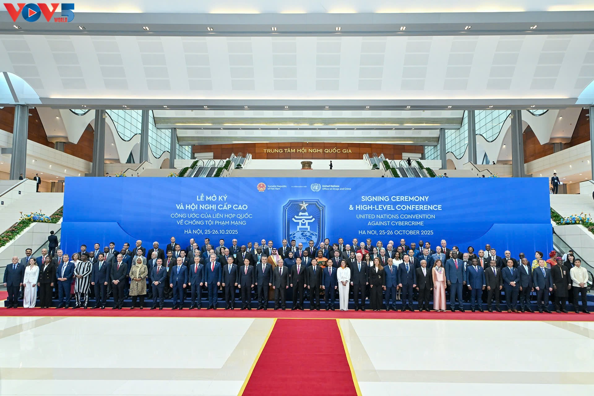 អញ្ជើញចូលរួមពិធីចុះហត្ថលេខាមានវត្តមាន ប្រធានរដ្ឋវៀតណាមលោក លឿង គឿង អគ្គលេខាធិការអង្គការសហប្រជាជាតិ លោក Antonio Guterres នាយិកាប្រតិបត្តិនៃការិយាល័យអង្គការសហប្រជាជាតិស្តីពីគ្រឿងញៀននិងឧក្រិដ្ឋកម្ម (UNODC) លោកស្រី Ghada Fathy Ismail Waly ប្រធានគណៈប្រតិភូ ថ្នាក់ដឹកនាំនៃប្រទេសជាសមាជិកអង្គការសហប្រជាជាតិ និងតំណាងអង្គការអន្តរជាតិ។