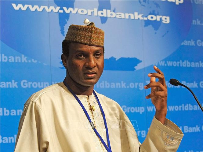 លោក Ali Lamine Zeine កាលនៅជារដ្ឋមន្ត្រីក្រសួងសេដ្ឋកិច្ច និងហិរញ្ញវត្ថុរបស់នីហ្សេរីយ៉ា ក្នុងអំឡុងសន្និសីទសារព័ត៌មាននៅឯសន្និសីទមូលនិធិរូបិយវត្ថុអន្តរជាតិ (IMF) ក្នុងទីក្រុងវ៉ាស៊ីនតោន (សហរដ្ឋអាមេរិក) ថ្ងៃទី ១២ ខែតុលា ឆ្នាំ ២០០៨ (រូបថតឯកសារ៖ AFP/TTXVN) |