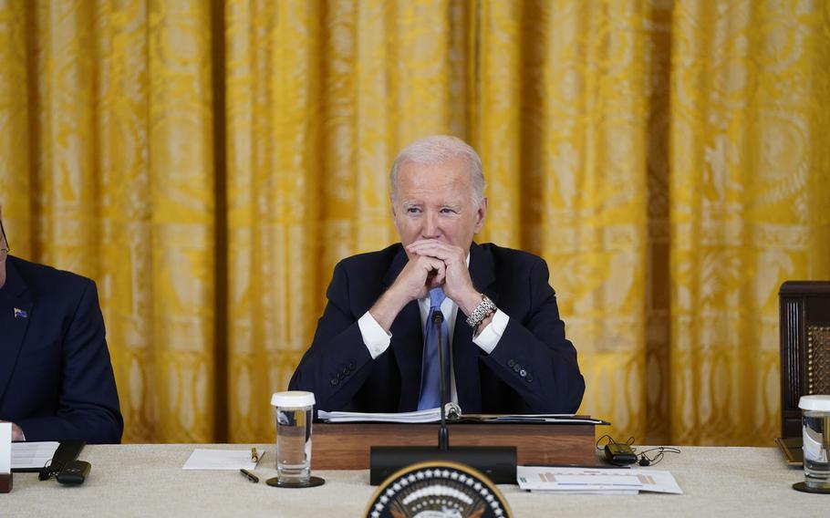 ប្រធានាធិបតីសហរដ្ឋអាមេរិក លោក Joe Biden ថ្លែងក្នុងកិច្ចប្រជុំ (រូបថត៖ Evan Vucci/AP) |