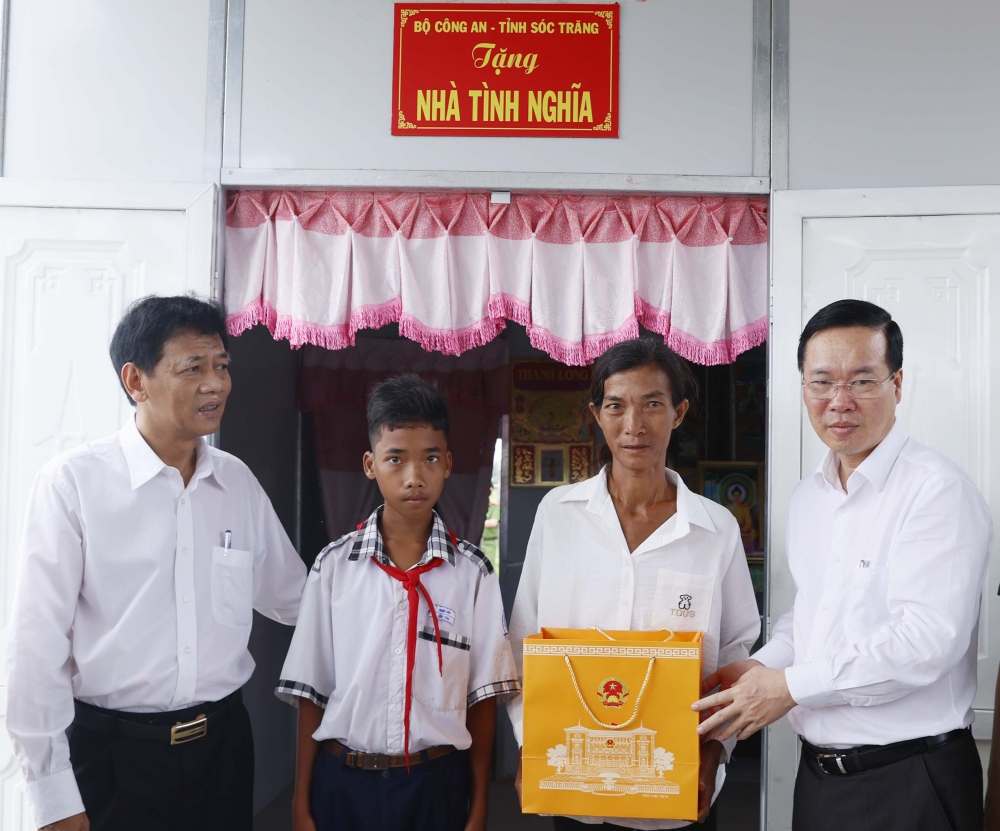 ក៏នៅស្រុក My Xuyen លោកប្រធានរដ្ឋ Vo Van Thuong បានទៅសួរសុខទុក្ខ និងជូនអំណោយដល់វីរអ្នកម្ដាយវៀតណាម លោកស្រី Le Thi Thanh ផងដែរ៕