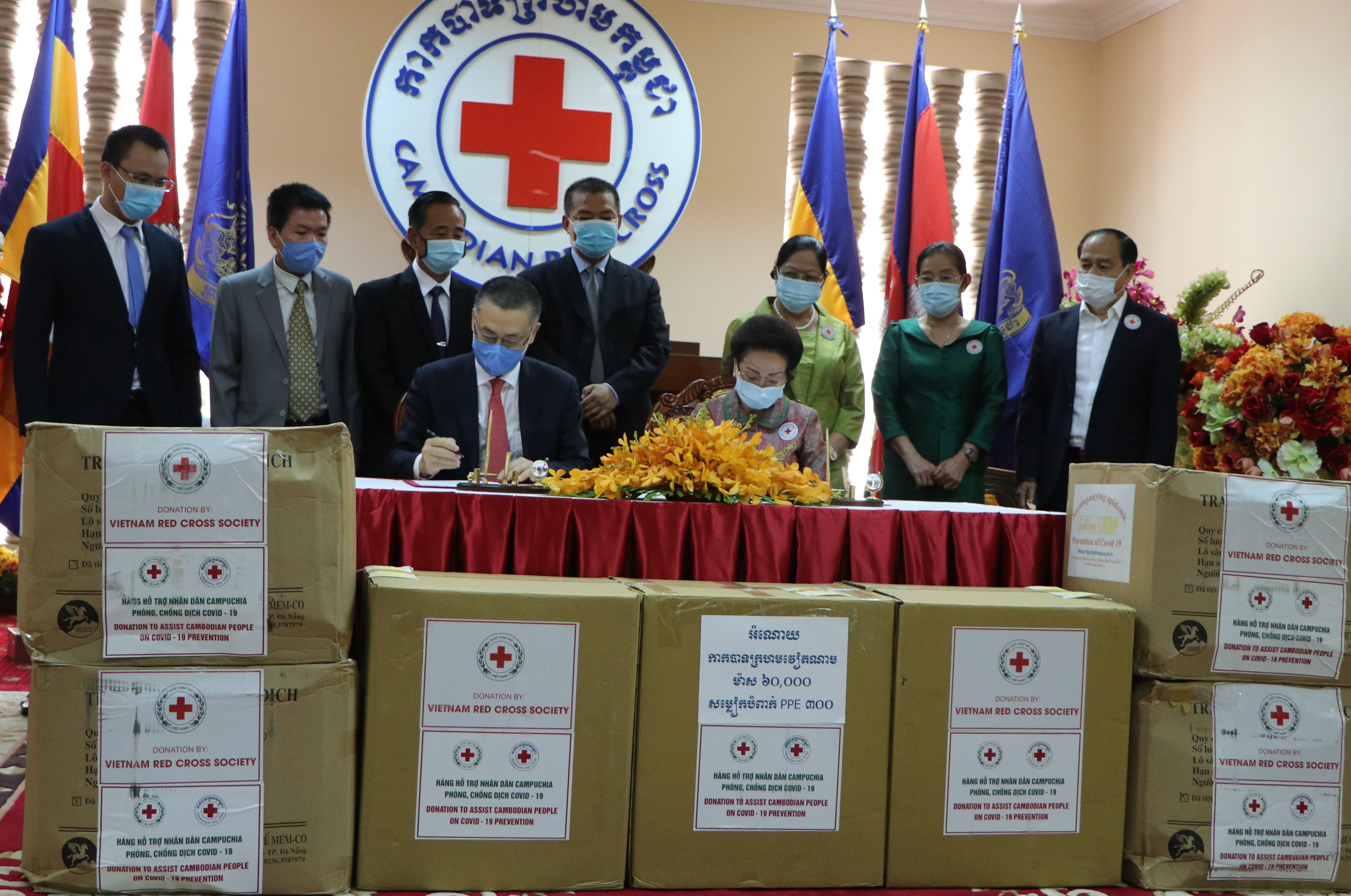 នាព្រឹកថ្ងៃទី២៩ មេសា នៅរាជធានីភ្នំពេញ ឯកអគ្គរដ្ឋទូតវៀតណាម ប្រចាំព្រះរាជាណាចក្រកម្ពុជាលោក Vu Quang Minh បានតាងនាមសមា គមន៍កាកបាទក្រហមវៀតណាមប្រគល់ជំនួយឧបត្ថម្ភជាសម្ភារៈបរិក្ខារពេទ្យជូនដល់កាកបាទក្រហមកម្ពុជា។ ជំនួយឧបត្ថម្ភនេះរួមមានម៉ាស់ពេទ្យចំនួន ៦ម៉ឺនម៉ាស់និងសម្លៀកបំពាក់ការពារ PPE ចំនួន៣០០ឈុត។