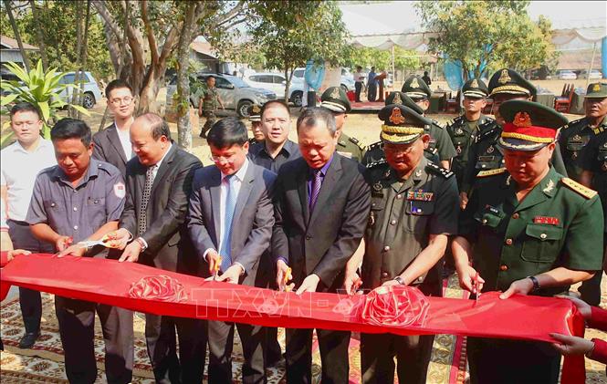 គណៈប្រតិភូធ្វើពិធីកាត់ខ្សែបូសម្ពោធគម្រោងទីកន្លែងសក្ការៈបូជានិងរក្សាទុកអដ្ឋិធាតុយុទ្ធជនពលីនៃកងទ័ពស្ម័គ្រចិត្តវៀតណាម នៅខេត្តប៉ៃលិន កម្ពុជា។(រូបថត៖ TTXVN) |