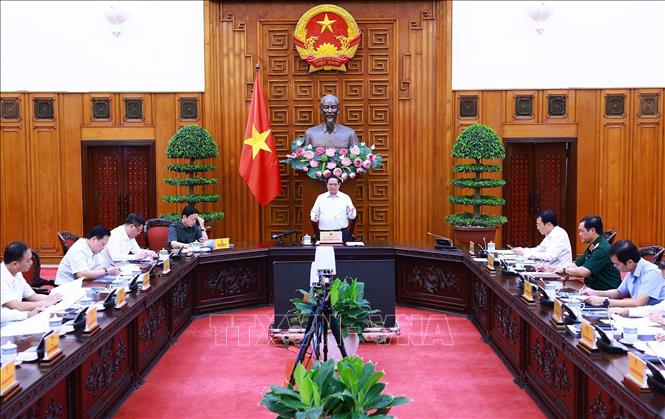 នាយករដ្ឋមន្ត្រី Pham Minh Chinh បានដឹកនាំកិច្ចប្រជុំ ស្តីពីការអនុវត្តគម្រោងសាងសង់ខ្សែបញ្ជូនអគ្គីសនី ៥០០ kV សៀគ្វី ៣។ រូបថត៖ Duong Giang/TTXVN |
