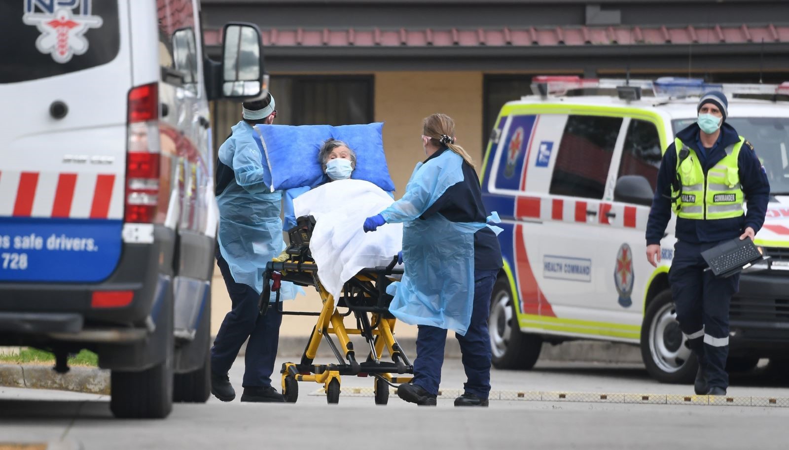 បុគ្គលិកពេទ្យបានបញ្ជូនអ្នកជំងឺដែលឆ្លង COVID-19 ទៅសង្គ្រោះបន្ទាន់នៅមន្ទីរពេទ្យ Victoria ក្នុងប្រទេសអូស្ត្រាលីកាលពីថ្ងៃទី ២៧ ខែកក្កដាឆ្នាំ ២០២០ (រូបថត៖ AFP / TTXVN) |