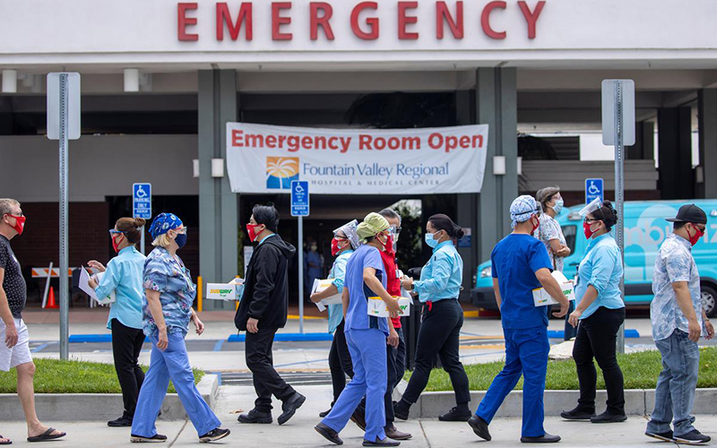 បុគ្គលិកពេទ្យនៅមន្ទីរពេទ្យនៅតំបន់ Fountain Valley រដ្ឋកាលីហ្វ័រញ៉ាសហរដ្ឋអាមេរិក (រូបថតៈReuters) |