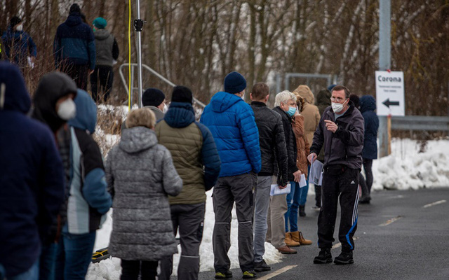 កម្មកររងចាំនៅព្រំដែនរវាងសាធារណរដ្ឋឆែកនិងអាឡឺម៉ង់ដើម្បីធ្វើតេស្តកូវីដ ១៩ |