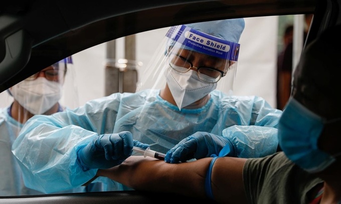 បុគ្គលិកសុខាភិបាលយកសំណាកឈាមនៅឯកន្លែងធ្វើតេស្ត(រូបថត៖ រ៉យទ័រ) |