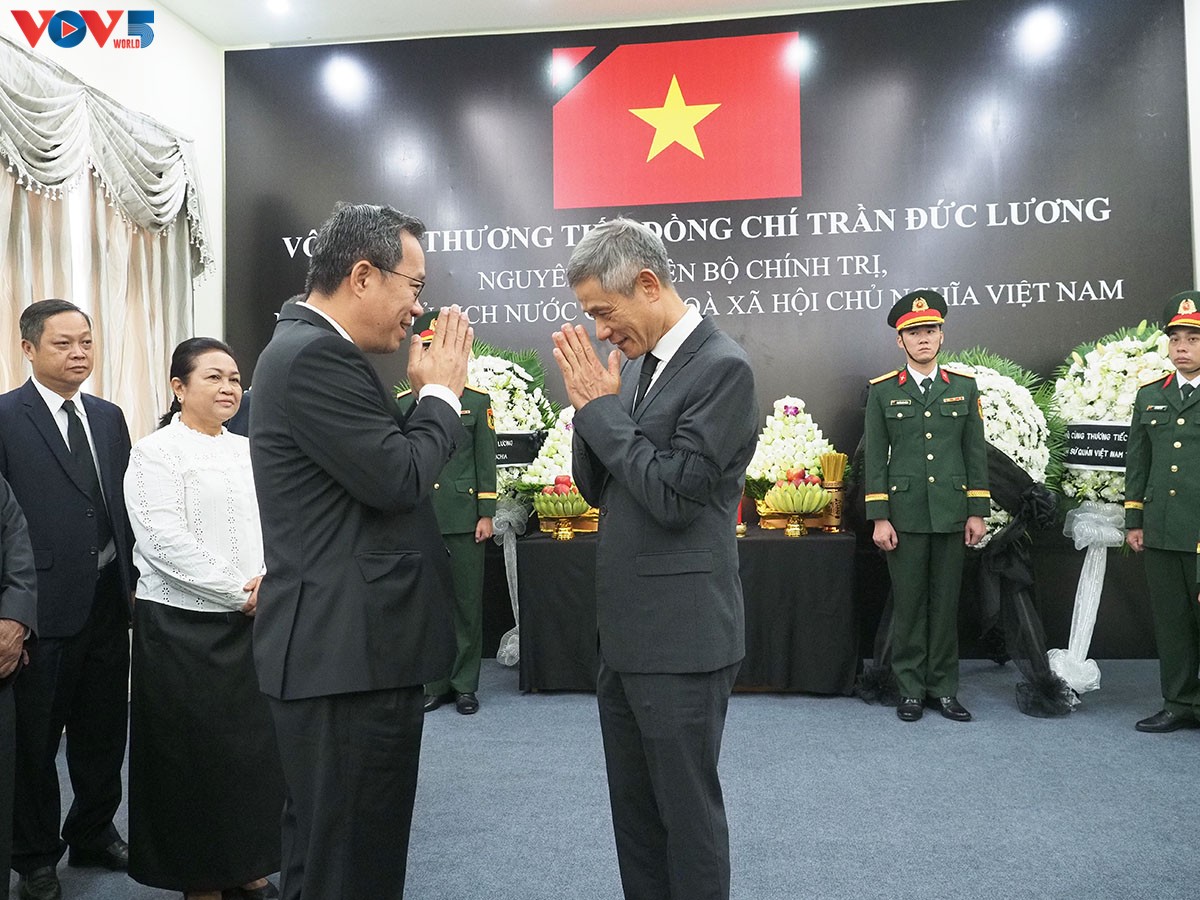 សសេរក្នុងសៀវភៅក្រាំងមាសមរណទុក្ខ និងចូលរួមរំលែកទុក្ខក្នុងពិធីគោរពវិញ្ញាណក្ខន្ធ តំណាងព្រះមហាក្សត្រ នរោត្តម សីហមុនី រដ្ឋសភា ព្រឹទ្ធសភា រាជរដ្ឋាភិបាលកម្ពុជា គណបក្សប្រជាជនកម្ពុជា ក្រសួង មន្ទីរ ស្ថាប័ន និងអាជ្ញាធរមូលដ្ឋាននៃព្រះរាជាណាចក្រកម្ពុជា សុទ្ធតែបានចូលរួមរំលែកទុក្ខយ៉ាងជ្រាលជ្រៅ ជាមួយបក្ស រដ្ឋ និងប្រជាជនវៀតណាម ចំពោះមរណភាពរបស់អតីតប្រធានរដ្ឋ លោក Tran Duc Luong។