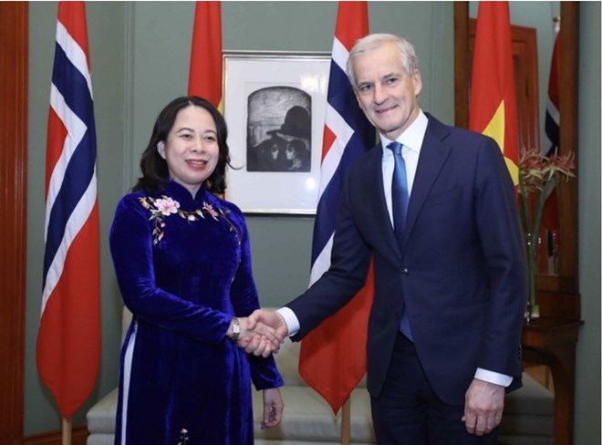 អនុប្រធានរដ្ឋ Vo Thi Anh Xuan និងនាយករដ្ឋមន្ត្រីន័រវេស Jonas Gahr Store។ រូបថត៖ VGP |