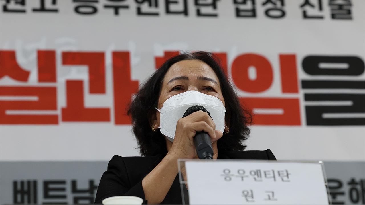 លោកស្រី Nguyen Thi Thanh ក្នុងសន្និសីទសារព័ត៌មានអំពីករណីបណ្ដឹង ដែលបានធ្វើឡើងនៅទីក្រុងសេអ៊ូល នាថ្ងៃទី ៩ ខែសីហា ឆ្នាំ ២០២២។ (រូបថត៖ Yonhap News) |