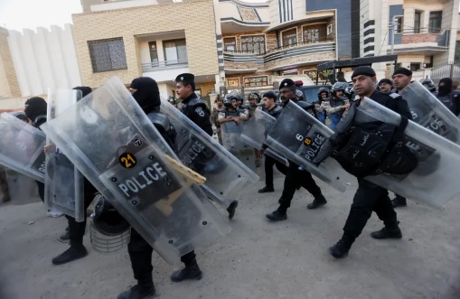 ប៉ូលិសប្រឆាំងកុបកម្ម នៅខាងក្រៅស្ថានទូតស៊ុយអែតក្នុងទីក្រុងបាកដាដថ្ងៃទី២៩ ខែមិថុនា ឆ្នាំ២០២៣។ រូបថត៖ Reuters |
