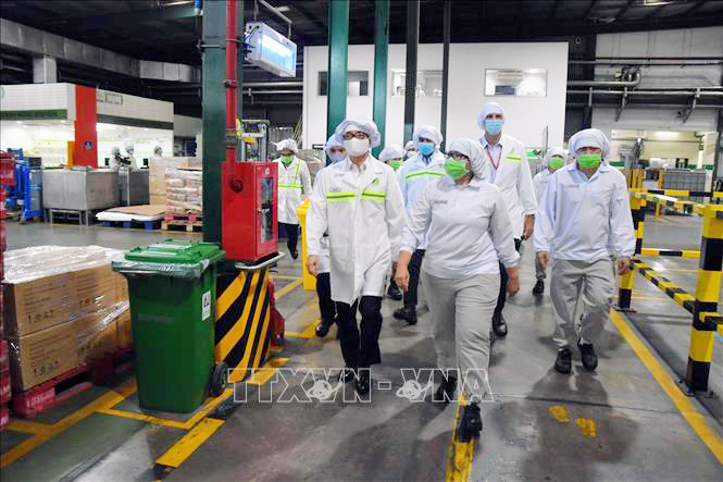 ក្រុមការងារដឹកនាំដោយលោកឧបនាយករដ្ឋមន្រ្តី Vu Duc Dam ទៅត្រួតពិនិត្យការងារបង្ការ ប្រយុទ្ធប្រឆាំងនឹងជម្ងឺ Covid-19 នៅក្រុមហ៊ុន Nestle។ (រូបថត៖ TTXVN) |