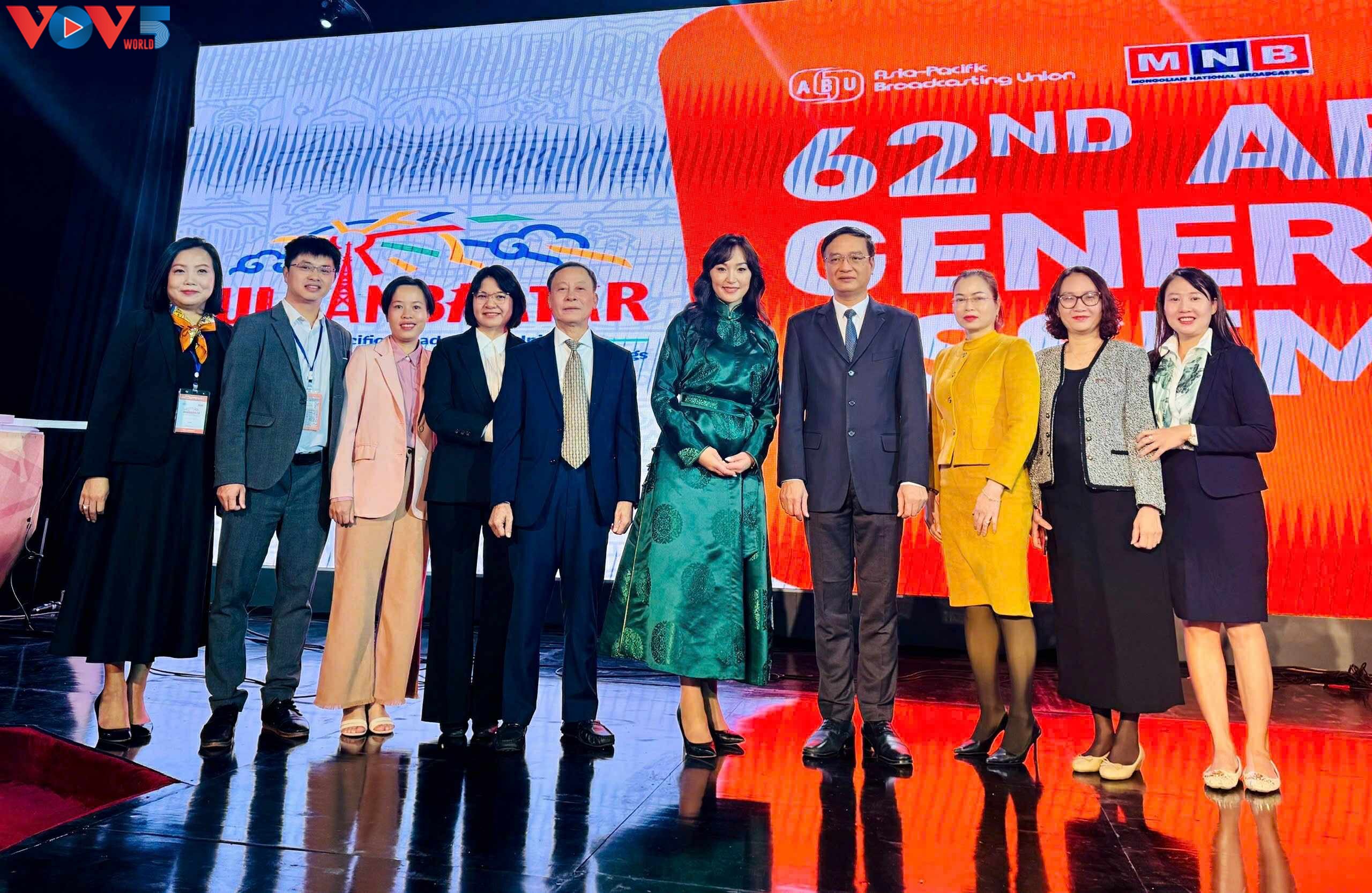 គណៈប្រតិភូ VOV ថតរូបជាមួយលោកស្រី Gerel Gankhuyay អគ្គនាយកវិទ្យុ និងទូរទស្សន៍ម៉ុងហ្គោលី ដែលជាម្ចាស់ផ្ទះនៃមហាសន្និបាត ABU ឆ្នាំ ២០២៥ (ស្ត្រីឈរកណ្តាល) (រូបថត៖ VOV) |