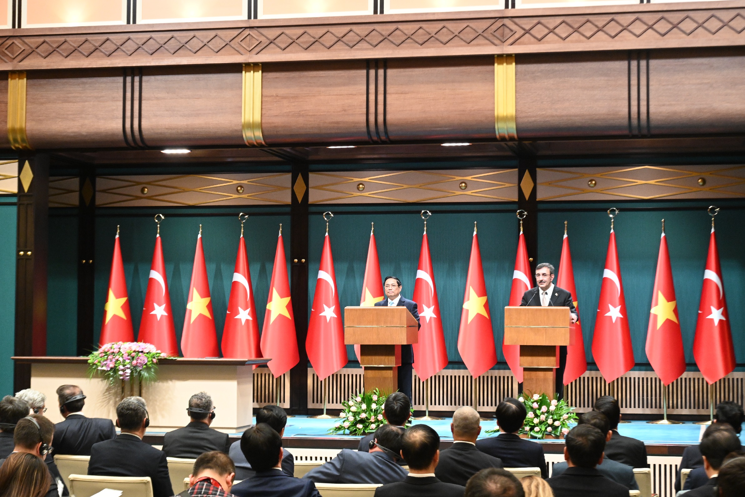 នៅក្នុងសន្និសីទសារព័ត៌មាន នាយករដ្ឋមន្ត្រីវៀតណាម លោក Pham Minh Chinh និងអនុប្រធានាធិបតីទួរគី លោក Cevdet Yilmaz បានឲ្យដឹងថា៖ ថ្នាក់ដឹកនាំនៃប្រទេសទាំងពីរ បានឯកភាពគ្នា អំពីសក្តានុពលនៃកិច្ចសហប្រតិបត្តិការដ៏ធំធេងរវាងវៀតណាមនិងទួរគី; ហើយបានអះអាងនូវការប្តេជ្ញាចិត្តរបស់រដ្ឋ រដ្ឋាភិបាលនិងប្រជាជននៃប្រទេសទាំងពីរ ក្នុងការជំរុញថែមទៀតកិច្ចសហប្រតិបត្តិការលើគ្រប់វិស័យ រវាងវៀតណាមនិងទួរគី។