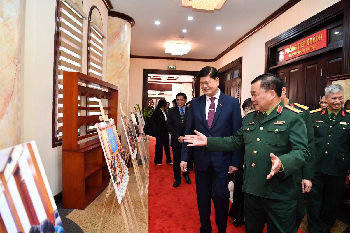 លោកឧត្តមសេនីយ៍ឯក Hoang Xuan Chien និងលោក Irineo C. Espino ទស្សនាការតាំងពិព័រណ៍រូបថតស្តីពីកិច្ចសហប្រតិបត្តិការការពារជាតិវៀតណាម-ហ្វីលីពីន។ (រូបថត៖ Tuan Huy/qdnd.vn) |