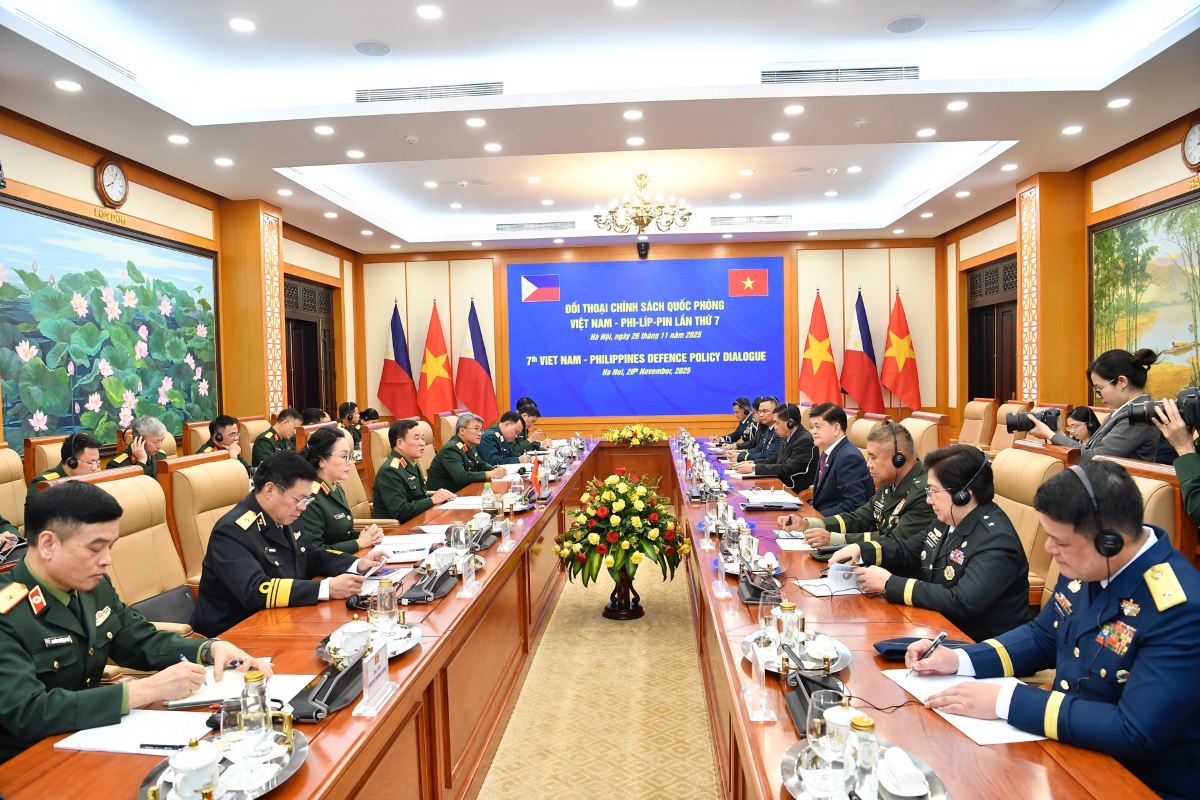 (VOVWORLD) - កាលពីរសៀលថ្ងៃទី ២៦ ខែវិច្ឆិកា នៅទីក្រុងហាណូយ លោកឧត្តមសេនីយ៍ឯក Hoang Xuan Chien អនុរដ្ឋមន្ត្រីក្រសួងការពារប្រទេសវៀតណាម និងលោក Irineo C. Espino អនុរដ្ឋមន្ត្រីក្រសួងការពារជាតិហ្វីលីពីន បានធ្វើជាសហប្រធាននៃកិច្ចសន្ទនា គោលនយោបាយការពារជាតិវៀតណាម-ហ្វីលីពីនលើកទី ៧។