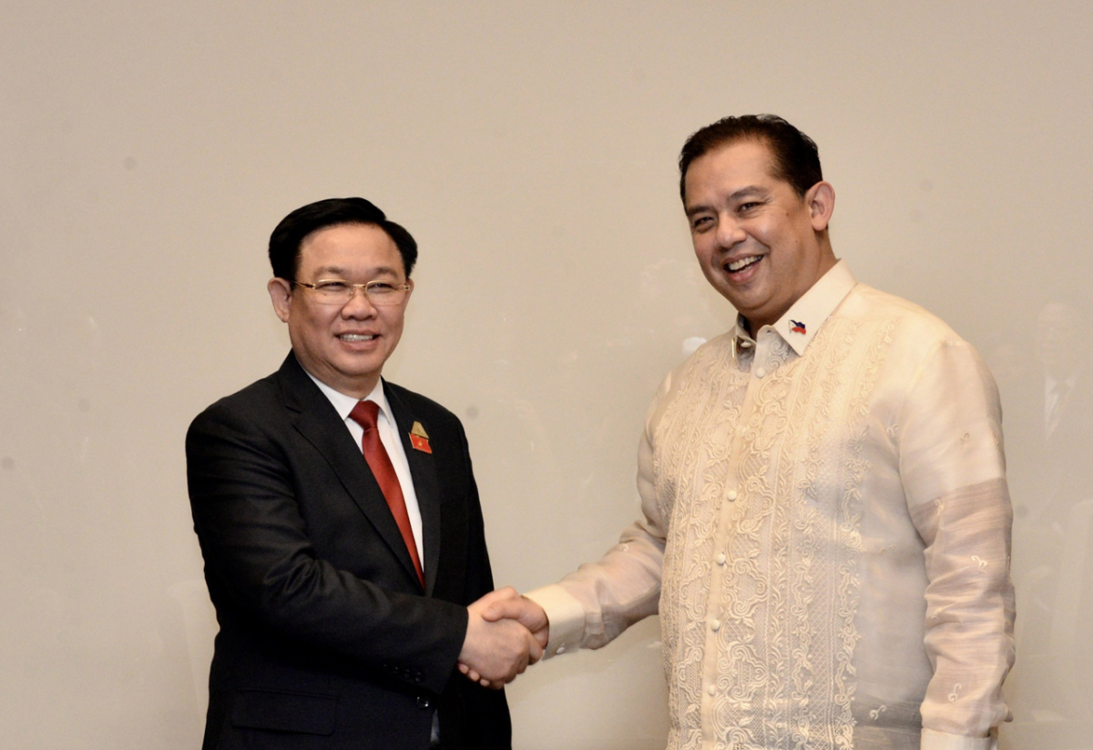 ប្រធានរដ្ឋសភា លោក Vuong Dinh Hue ជួបជាមួយប្រធានសភាជាន់ទាបហ្វីលីពីន Ferdinand Martin Romualdez (រូបថត៖ VOV) |