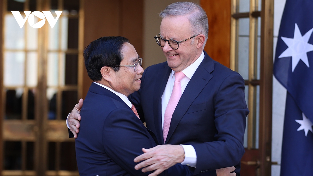 ក្នុងជំនួបពិភាក្សាការងារ នាយករដ្ឋមន្ត្រីលោក Pham Minh Chinh និងនាយករដ្ឋមន្ត្រីអូស្ត្រាលីលោក Anthony Albanese បានឯកភាពគ្នាលើកកំពស់ទំនាក់ទំនងទៅជាភាពជាដៃគូយុទ្ធសាស្ត្រគ្រប់ជ្រុងជ្រោយ ហើយបានពិភាក្សា និងឯកភាពសហការគ្នាយ៉ាងជិតស្និទ្ធ ដើម្បីអនុវត្តន៍ទិសដៅសំខាន់ៗ នាំកិច្ចសហប្រតិបត្តិការលើគ្រប់វិស័យឱ្យកាន់តែស៊ីជម្រៅថែមទៀត។ ក្នុងនោះមានទំនុកចិត្តនយោបាយ ការទូតកម្រិតខ្ពស់ជាង និងយុទ្ធសាស្ត្រជាង ហើយកិច្ចសហប្រតិបត្តិការសេដ្ឋកិច្ច ពាណិជ្ជកម្ម និងវិនិយោគប្រកបដោយបរិយាប័ន្ន ប្រកបដោយប្រសិទ្ធភាពជាក់ស្ដែង ជំរុញកិច្ចសហប្រតិបត្តិការវិទ្យាសាស្ត្រ-បច្ចេកវិទ្យា នវានុវត្តន៍ ការផ្លាស់ប្តូរឌីជីថល និងការផ្លាស់ប្តូរបៃតងឲ្យកាន់តែខ្លាំងក្លាថែមទៀត យោគយល់គ្នា និងចែករំលែកបន្ថែមអំពីកិច្ចសហប្រតិបត្តិការការពារជាតិ និងសន្តិសុខ។ ក្នុងឱកាសនេះ វៀតណាម និងអូស្ត្រាលីបានចេញសេចក្តីថ្លែងការណ៍រួមស្តីពីការដែលប្រទេសទាំងពីរបានតម្លើងថ្នាក់ទំនាក់ទំនងទៅជាភាពជាដៃគូយុទ្ធសាស្ត្រគ្រប់ជ្រុងជ្រោយ។