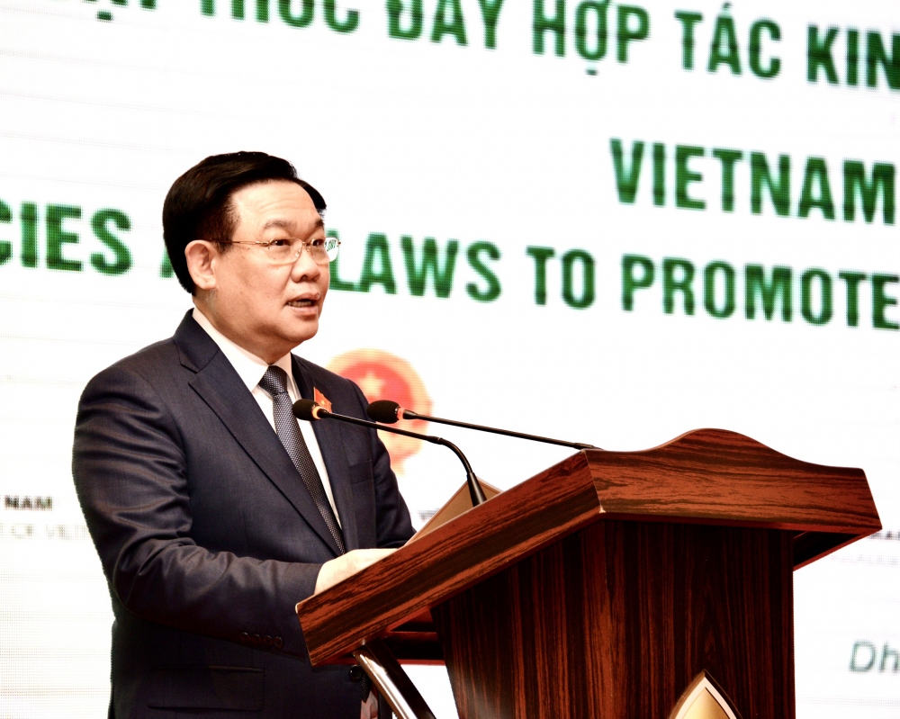 ប្រធានរដ្ឋសភាវៀតណាមលោក Vuong Dinh Hue អញ្ជើញថ្លែងនៅវេទិកា។ (រូបថត៖ VOV) |