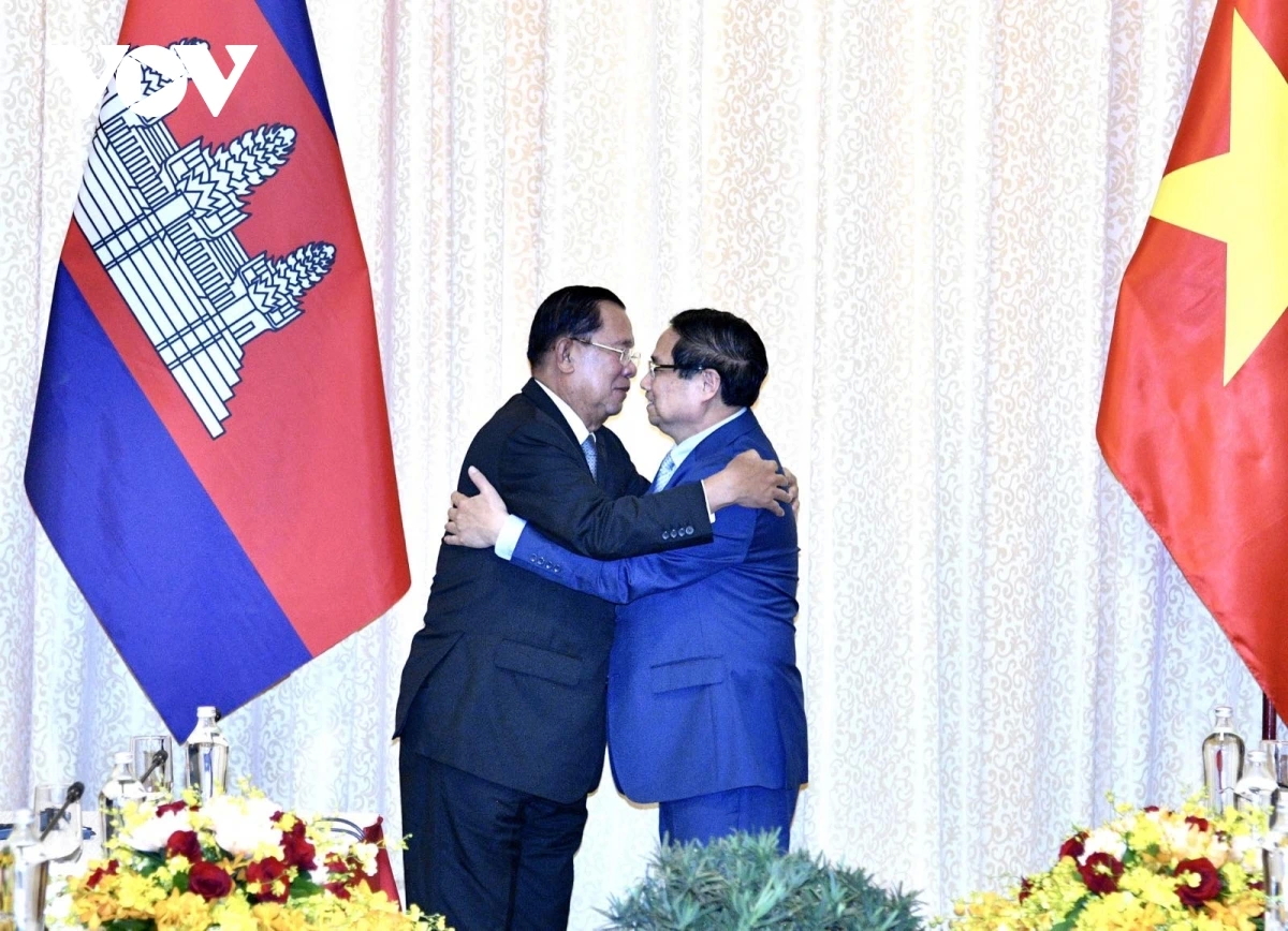 នាយករដ្ឋមន្ត្រី លោក ហ្វាម មិញ ជិញអញ្ជើញទទួលជួបជាមួយប្រធានគណបក្សប្រជាជនកម្ពុជា សម្តេច តេជោ ហ៊ុន សែន (រូបថត៖ VOV) |