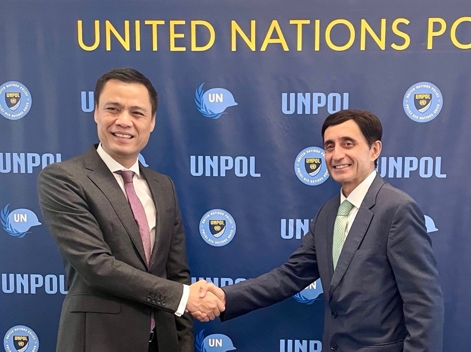លោកឯកអគ្គរដ្ឋទូត Dang Hoang Giang ប្រធានបេសកកម្មអចិន្ត្រៃយ៍របស់វៀតណាមប្រចាំអង្គការសហប្រជាជាតិ និងលោក Faisal Shahkar ទីប្រឹក្សាប៉ូលិសអង្គការសហប្រជាជាតិ។ រូបថត៖ VOV |