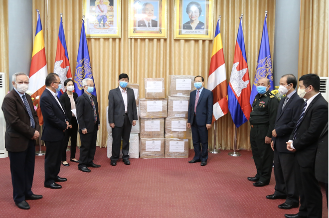 នាព្រឹកថ្ងៃទី ១៧ ខែមេសា នៅទីស្នាក់ការស្ថានទូតនៃព្រះរាជាណាចក្រកម្ពុជាប្រចាំនៅទីក្រុងហាណូយ លោក Vu Vuong Viet អនុប្រធានសមាគមមិត្តភាពវៀតណាម - កម្ពុជាបានប្រគល់ជូនសមាគមមិត្តភាព កម្ពុជា - វៀតណាមនូវសំភារៈ បរិក្ខាពេទ្យ និងសាច់ប្រាក់មួយចំនួន តាមរយៈស្ថានទូតនៃព្រះរាជាណាចក្រកម្ពុជាប្រចាំនៅវៀតណាម សំដៅរួមចំណែកជួយឧបត្ថម្ភដល់ប្រជាជនកម្ពុជាក្នុងការប្រយុទ្ធប្រឆាំង ជំងឺរាតត្បាត COVID-19។