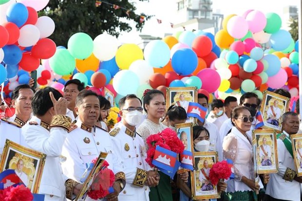 ប្រជាពលរដ្ឋខ្មែរចូលរួមសកម្មភាពអបអរសាទរបុណ្យឯករាជ្យជាតិ (រូបថត៖ Nguyen Vu Hung/TTXVN) |
