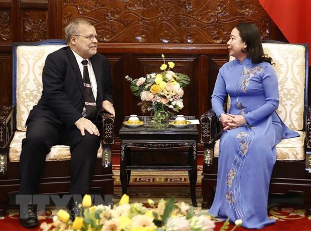 ប្រធានរដ្ឋស្តីទី លោកស្រី Vo Thi Anh Xuan អញ្ជើញទទួលជួបឯកអគ្គរដ្ឋទូតប្រេស៊ីល Fernando Apparicio da Silva (រូបថត៖ Thong Nhat/TTXVN) |