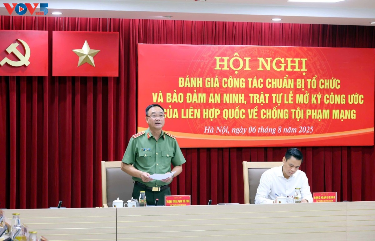 សន្និសីទវាយតម្លៃការត្រៀមរៀបចំ ធានាសន្តិសុខ និងសណ្តាប់ធ្នាប់សម្រាប់ពិធីចុះហត្ថលេខាលើអនុសញ្ញាអង្គការសហប្រជាជាតិស្តីពីការប្រយុទ្ធប្រឆាំងបទល្មើសតាមអ៊ីនធឺណិត។ រូបថត៖ Huy Nam /VOV |